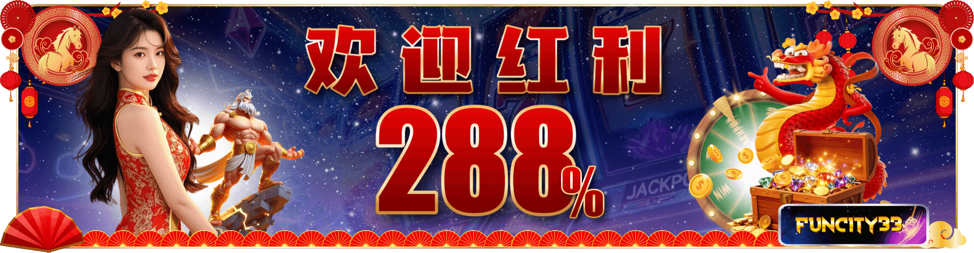 • FUNCITY33热烈欢迎所有新会员获得令人兴奋和高回报的288%首存红利,高达MYR388!